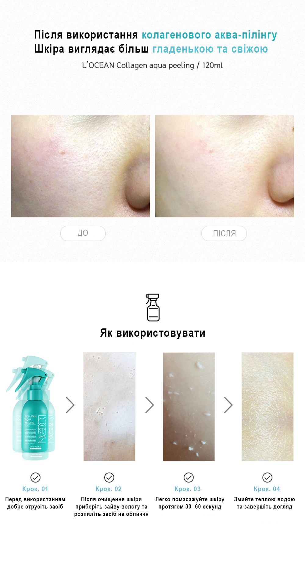 Колагеновий аква-пілінг-скатка L’OCEAN Collagen Aqua Peeling, 120 млДелікатне відлущення + зволоження без відчуття стягнення