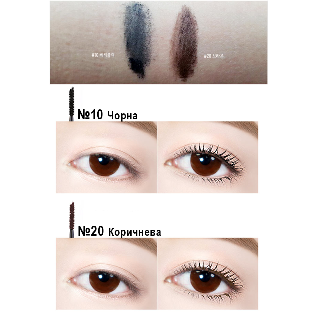 Спосіб використання:Наносьте туш від коренів до кінчиків, злегка похитуючи щіточку для кращого розділення вій.